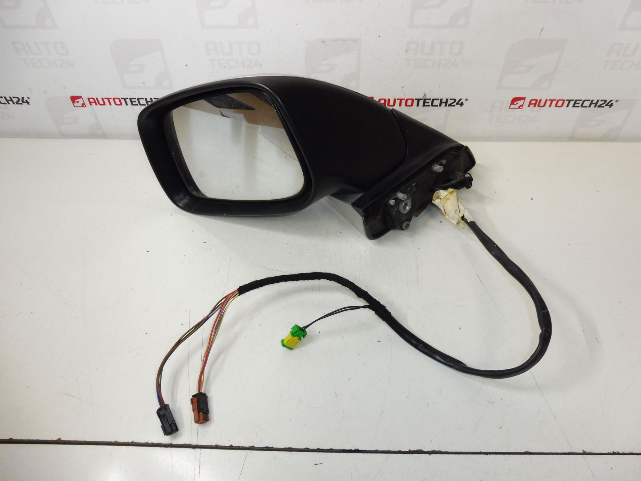 Espejo retrovisor izquierdo, regulable eléctricamente y plegable, para vehículos Citroën C8 y Peugeot 807. Color gris metalizado EZRC – Pintura Gris Aluminio. Lacado ligeramente arañado. Conector de 13 pines (6+5+2). Puerta del conductor.