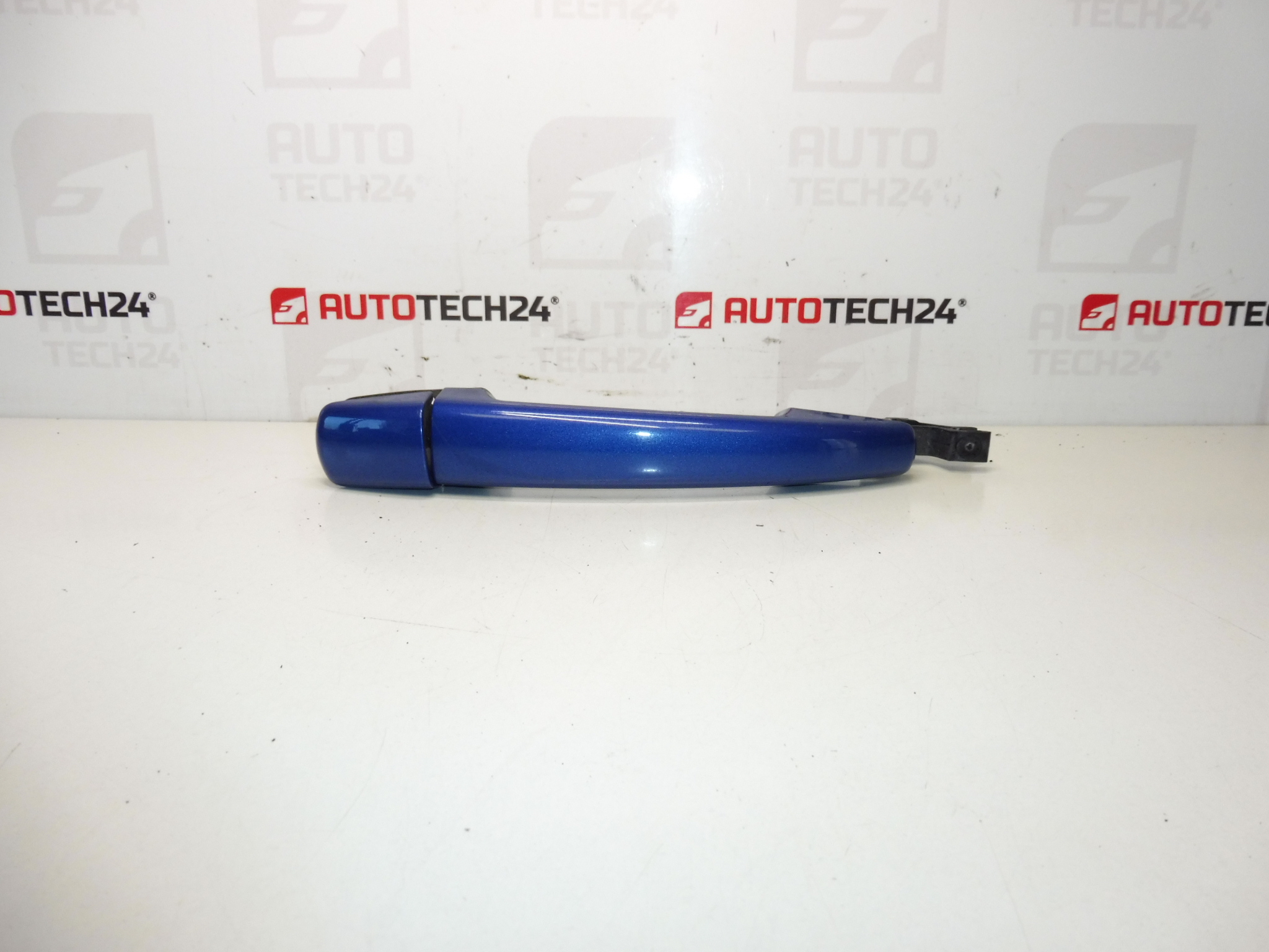 Manija para puertas delanteras y traseras derechas, así como para puertas traseras izquierdas, compatible con vehículos Citroën C4 y C6, y Peugeot 407. Presenta un acabado en color azul Alcyon (código de pintura KNN), que además de restaurar la funcionalidad, mejora la estética externa de su automóvil.
